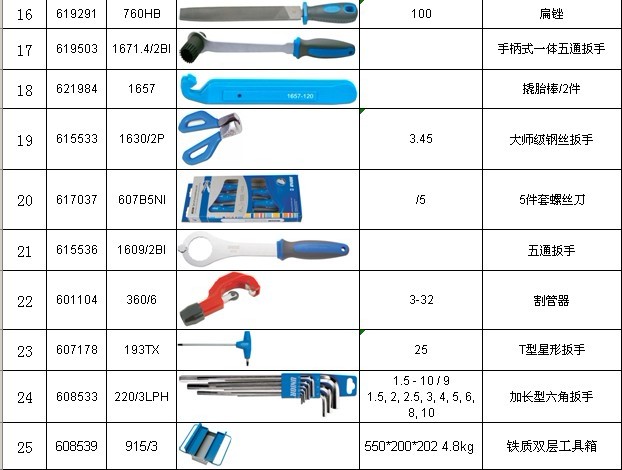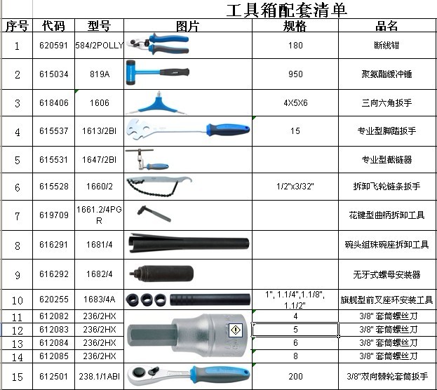UNIOR自行車(chē)工具箱,內(nèi)含24件工具+鐵工具箱,自行車(chē)所需的大部分維修安裝工具都包含在內(nèi)(市場(chǎng)上一些自行車(chē)工具箱里面所配的工具部分是用不上的,造成浪費(fèi),而這款UNIOR工具箱根據(jù)實(shí)際自行車(chē)店使用情況來(lái)配置的,每款工具都能用得上),加上UNIOR調(diào)圈臺(tái)/?product-2146.html和UNIOR碗組安裝工具/?product-2145.html,新開(kāi)自行車(chē)店所用到的工具就配齊了。