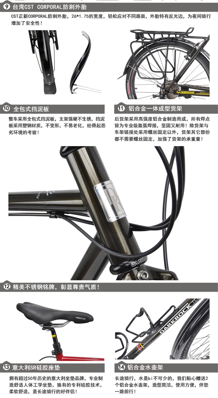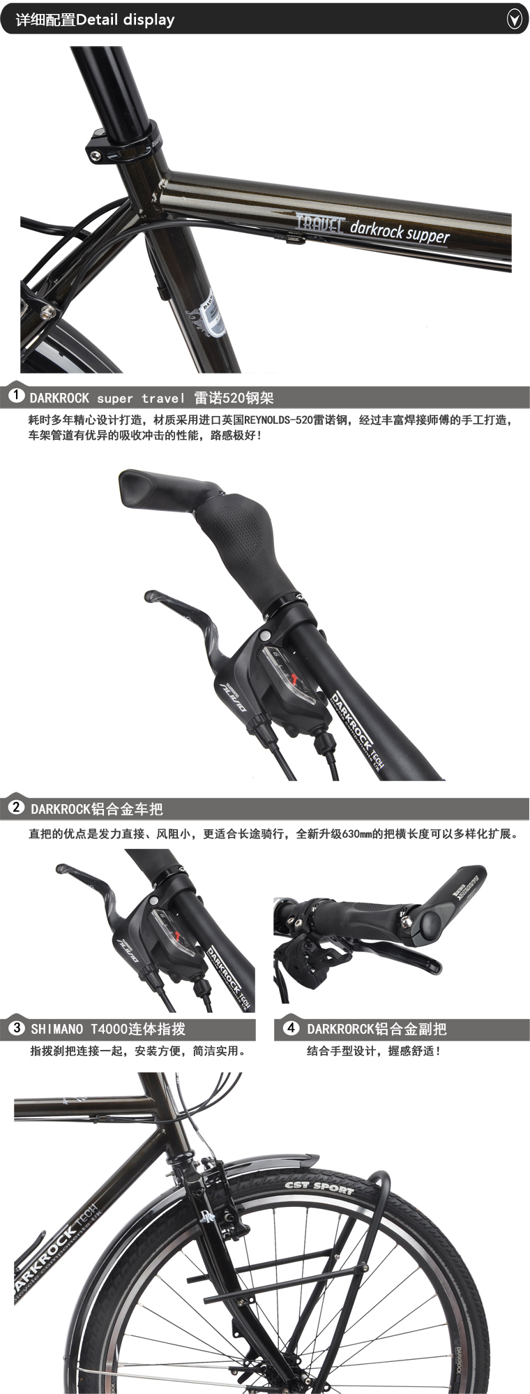 DARKROCK super travel 長途旅行車(27S),車架顏色有深褐色、墨綠色、灰藍色、紅色可遠,車架高度460/490/510/530mm。