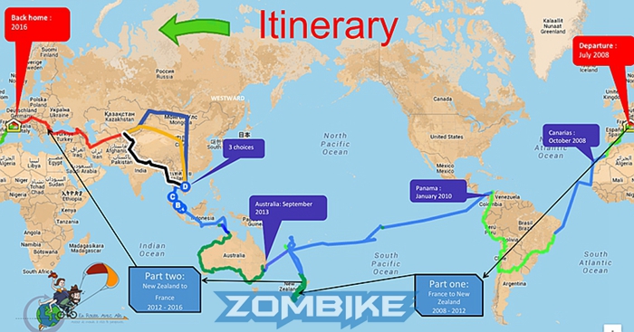 34歲的機械工程師,有航空學經(jīng)驗。在單車旅行前有13年的滑翔傘經(jīng)歷,之前也并沒有公開水域的航海體驗,只是在年輕時玩過業(yè)余航行。從21歲便開始各種旅行。