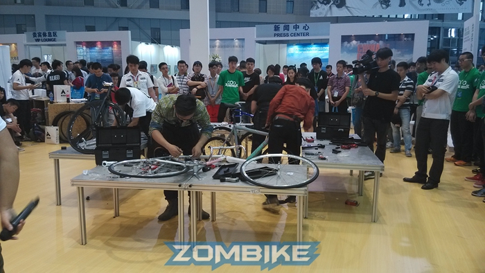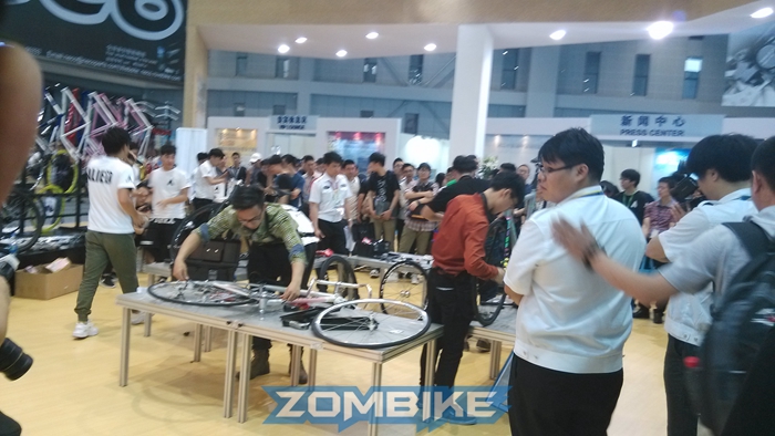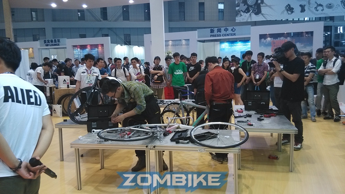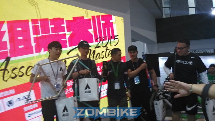 25屆上海國際車展現場,各路組裝高手全力比拼,DARKROCK向組裝大師致敬,梁總親自頒發冠軍獎品--DR休閑車架!