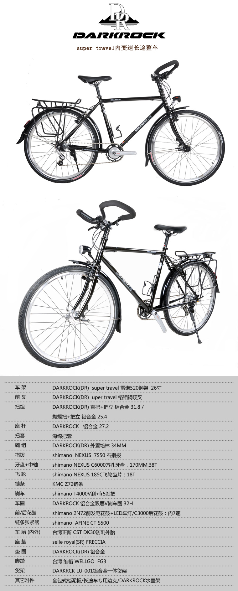 DARKROCK super travel 內7速長途整車