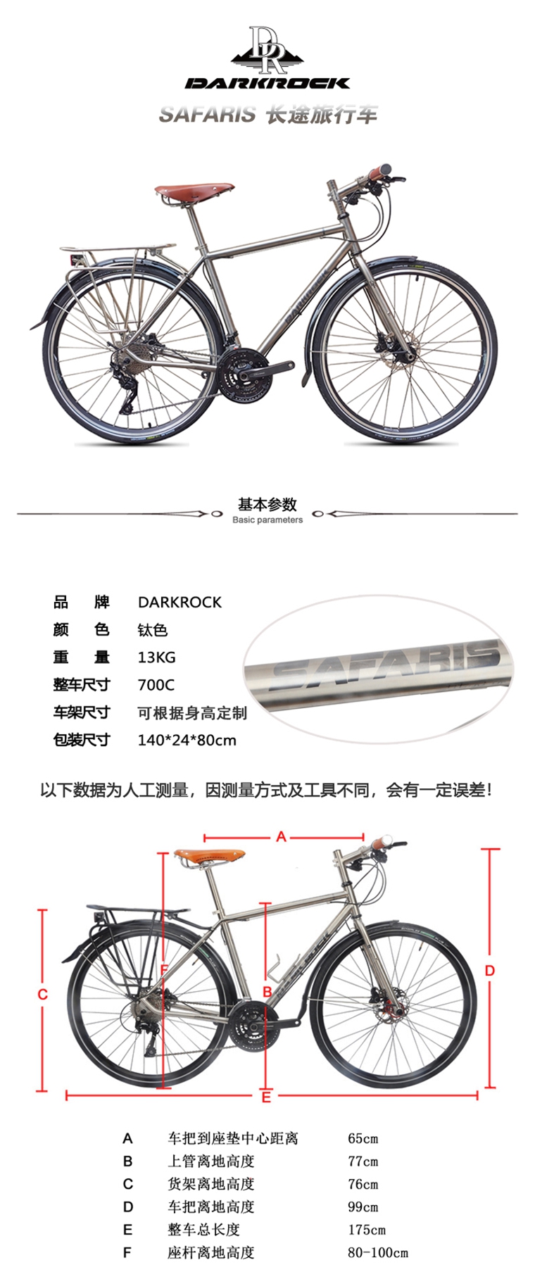 DARKROCK safaris 鈦合金整車(桶軸版),車架和前叉可單獨出售,700C*480/500/520mm.配置可升級定制,詳情聯系QQ/微信:81882299,電話:18922208459