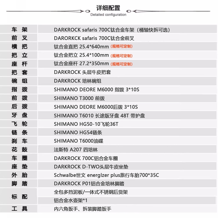 DARKROCK safaris 鈦合金整車(桶軸版),車架和前叉可單獨出售,700C*480/500/520mm.配置可升級,詳情咨詢客服 !!!
