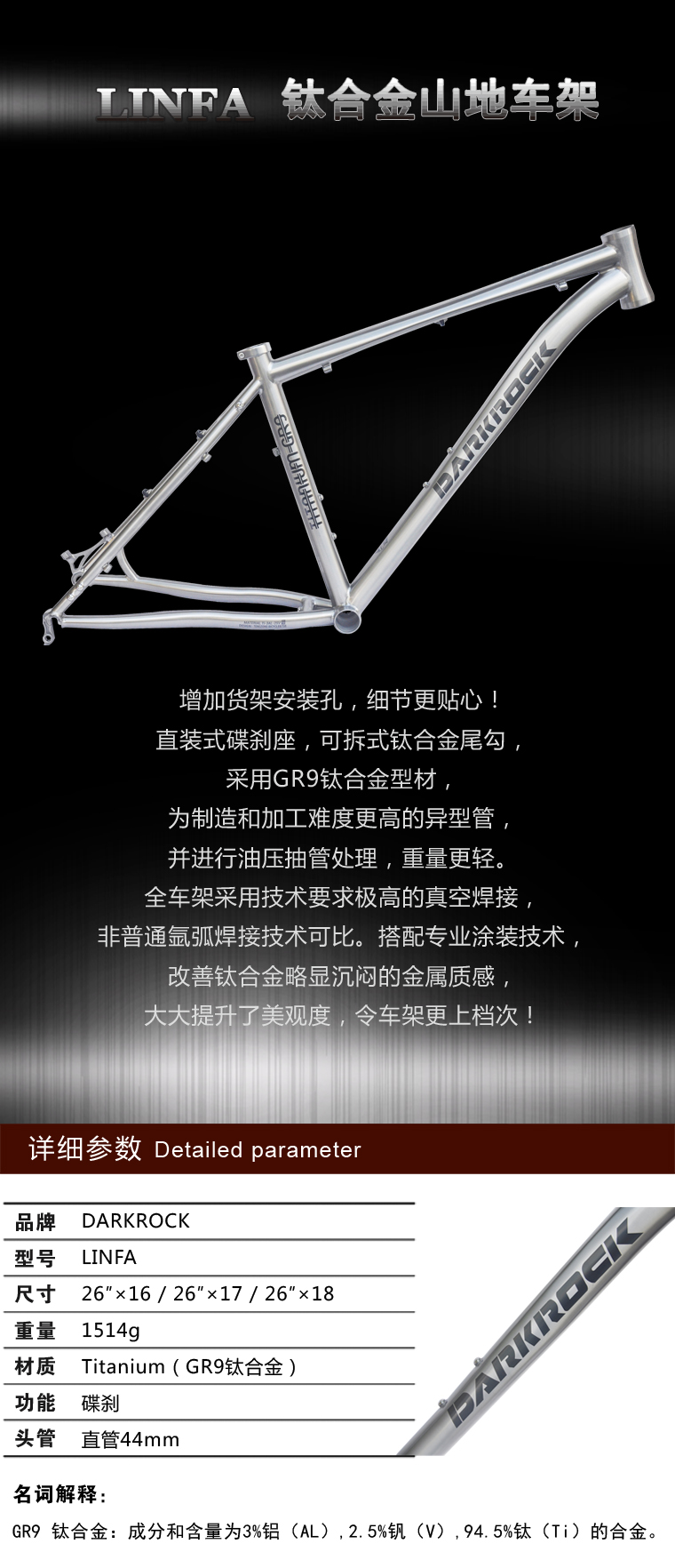DARKROCK LINFA 山地鈦合金車架