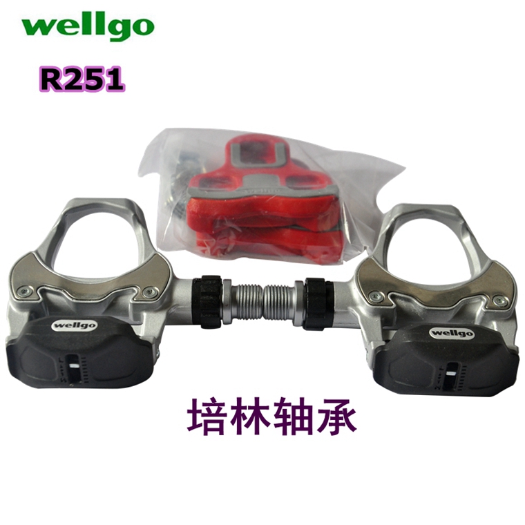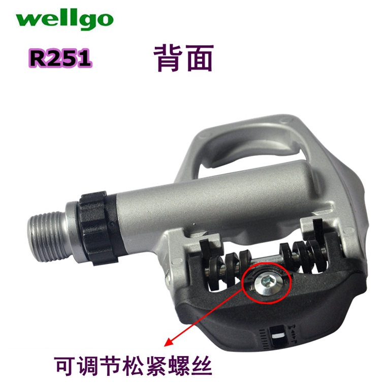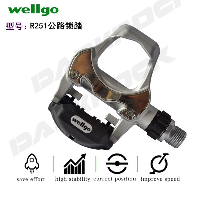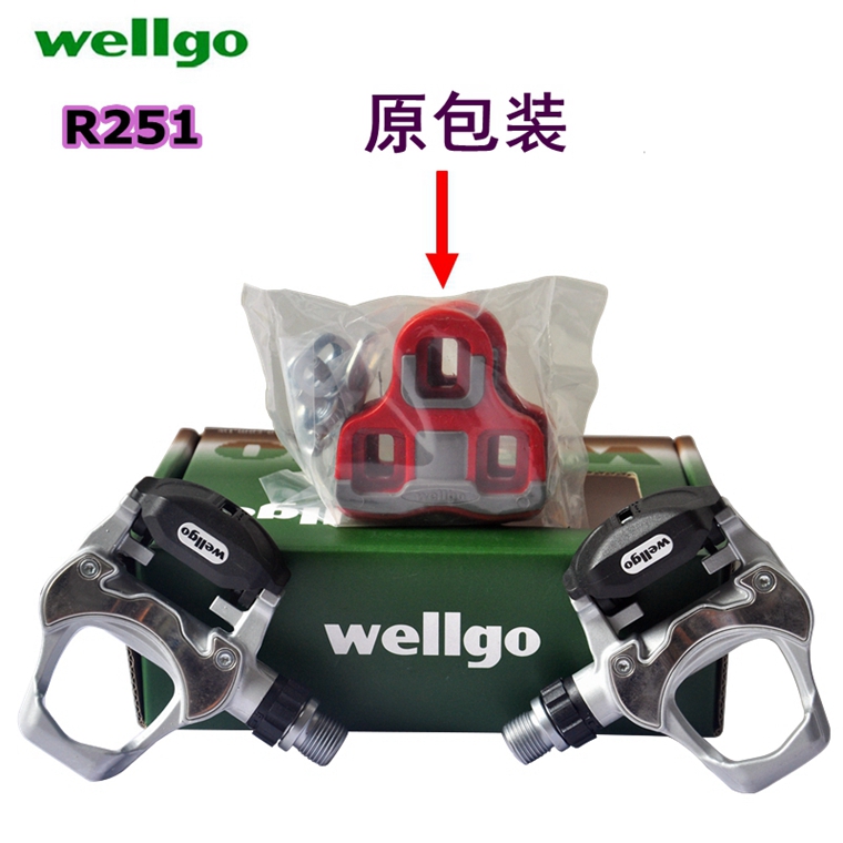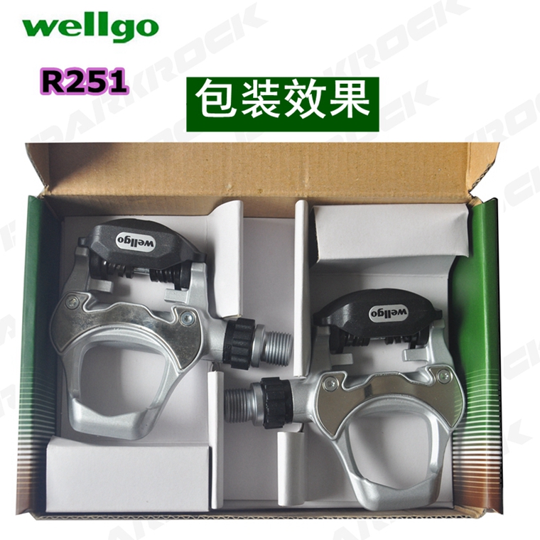 WELLGO R251公路自鎖腳踏,銀色,帶鎖片,鋁合金材料,約273g,公路車專用。