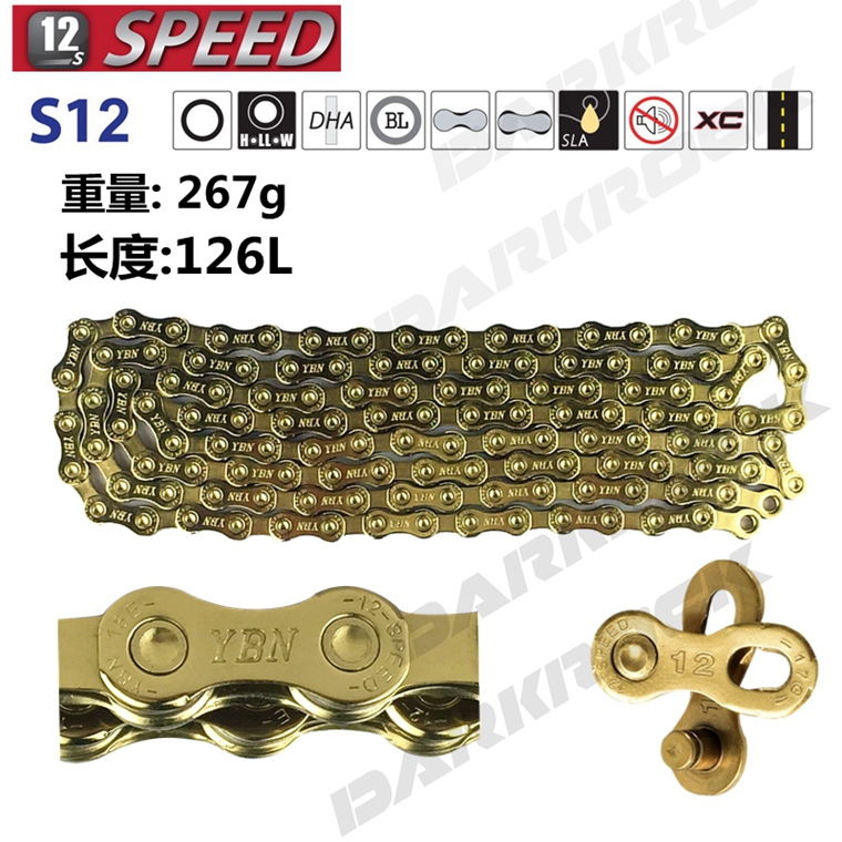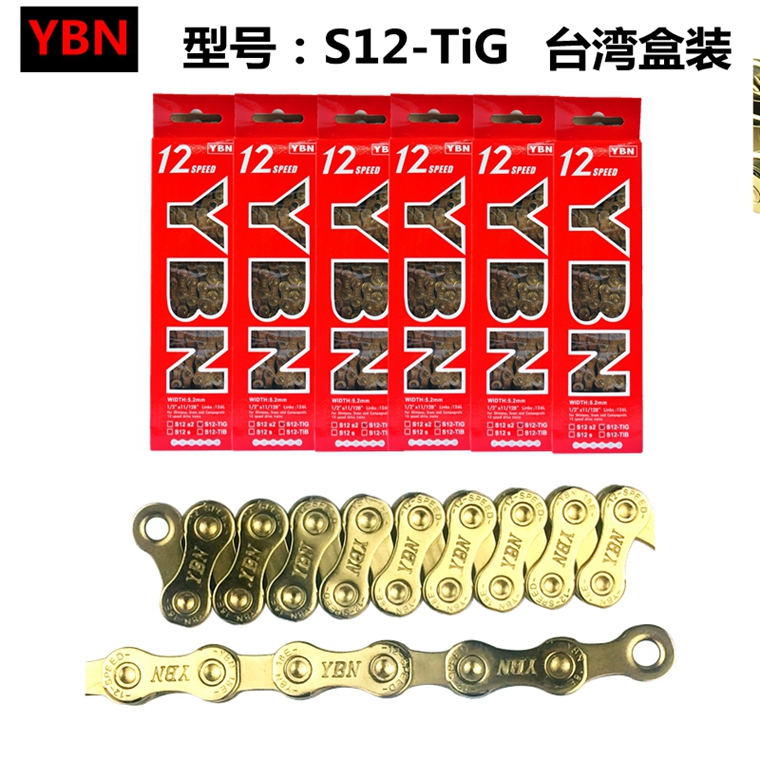 臺灣雅邦YBN S12-TIG 12速/金色,126節,兼容shimano 速聯 藍圖等變速,公路 山地通用,盒裝行貨。