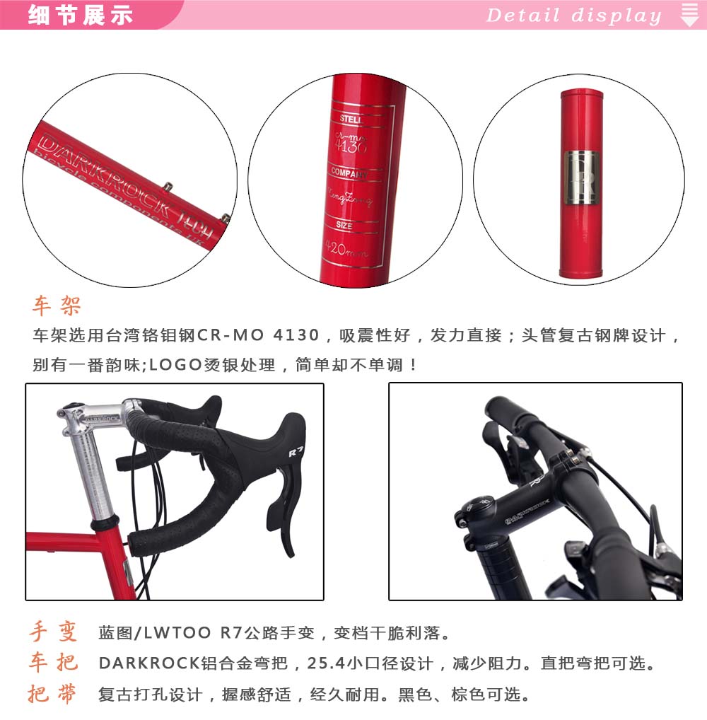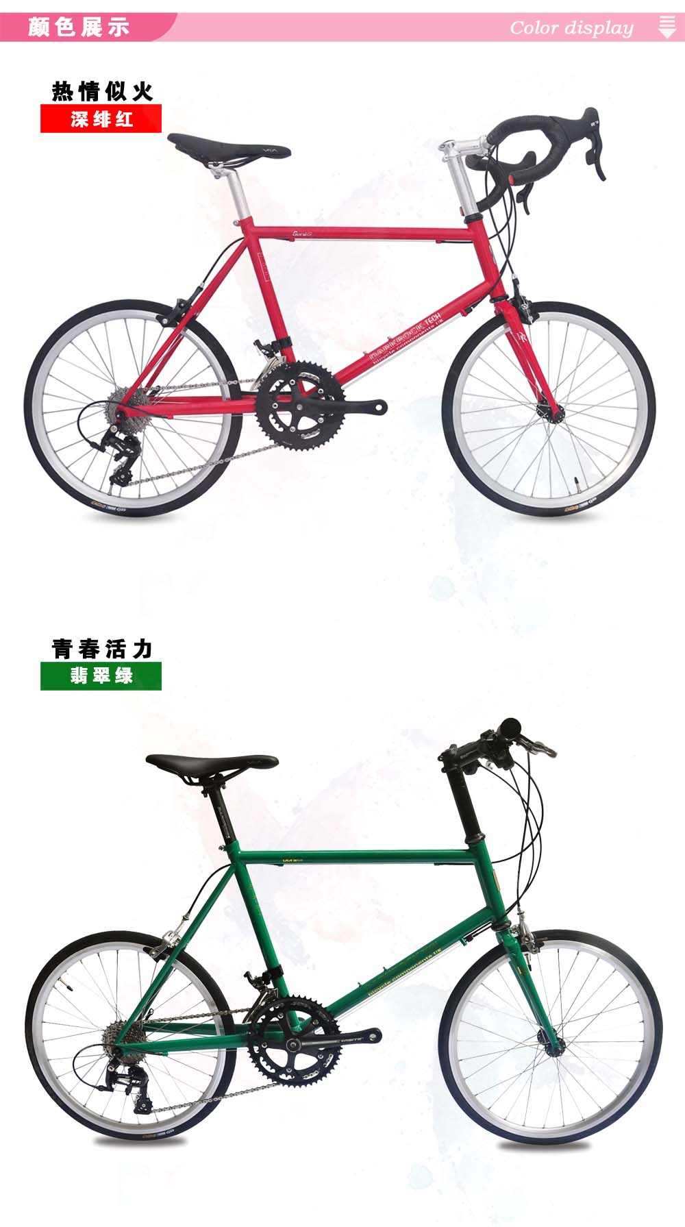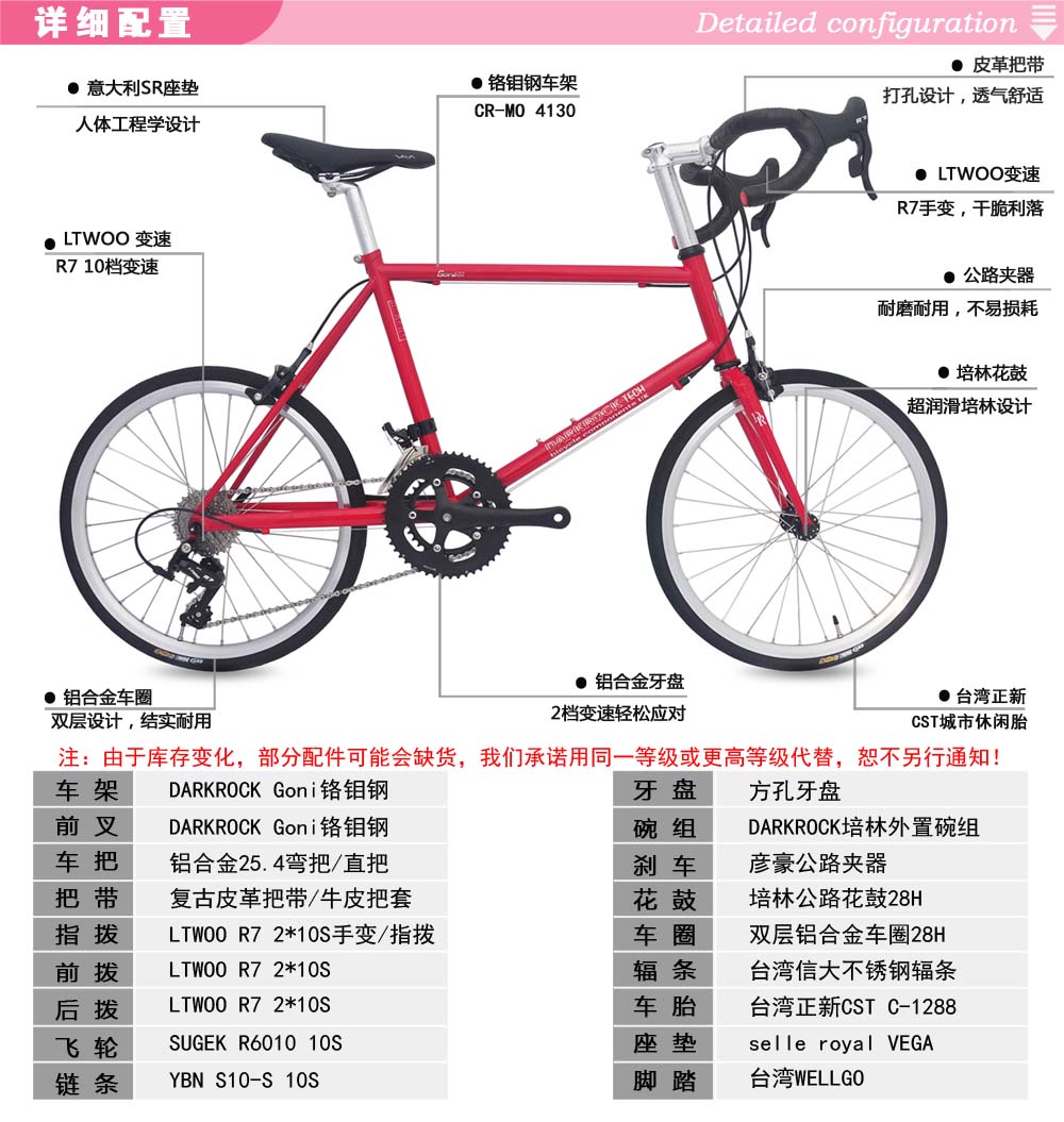 DARKROCK GONI 451小輪徑整車,藍圖R7公路套件,直把、彎把可選,進口臺灣鉻鉬鋼車架+前叉,純手工焊接技術,翡翠綠和深緋紅兩色,車架尺寸:420MM/440MM,