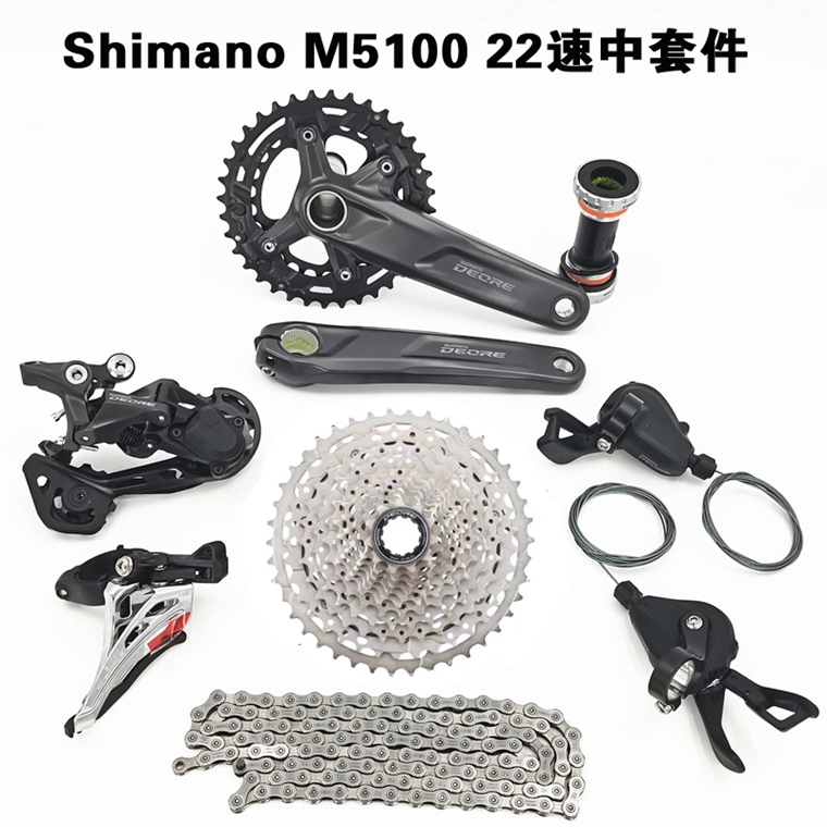 Shimano DEORE M5100中套件(22S)Shimano DEORE M5100中套件,包含: M5100左右無窗指撥+ M5100側拉前撥+M5120后撥+M5100雙片牙盤36-26T +BB52中軸+HG601鏈條+M5100 11-42T飛輪