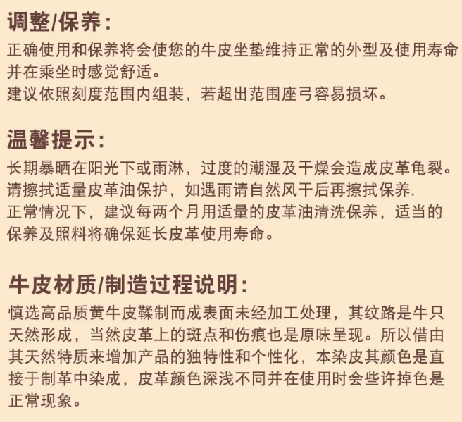 4. 皮革有記憶性,會因為長時間騎乘,越來越服貼您的PP。