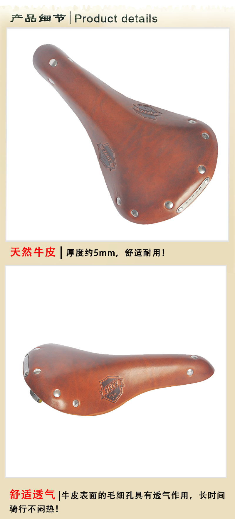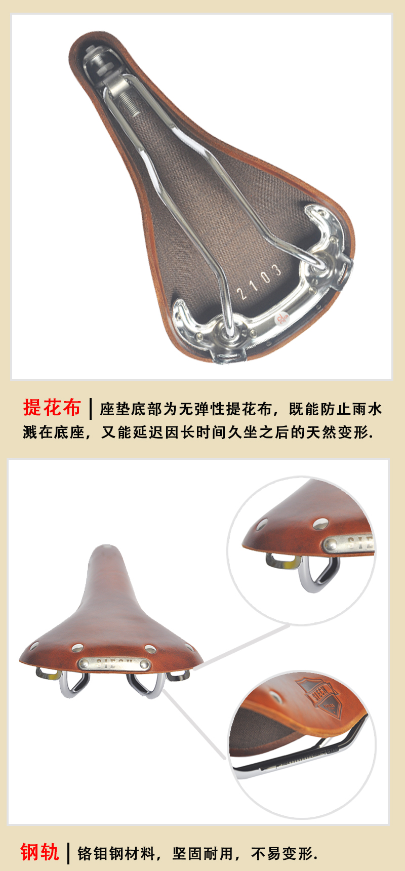 洲品牌SIECH牛皮坐墊長途旅行車休閑復古自行車座墊 棕色