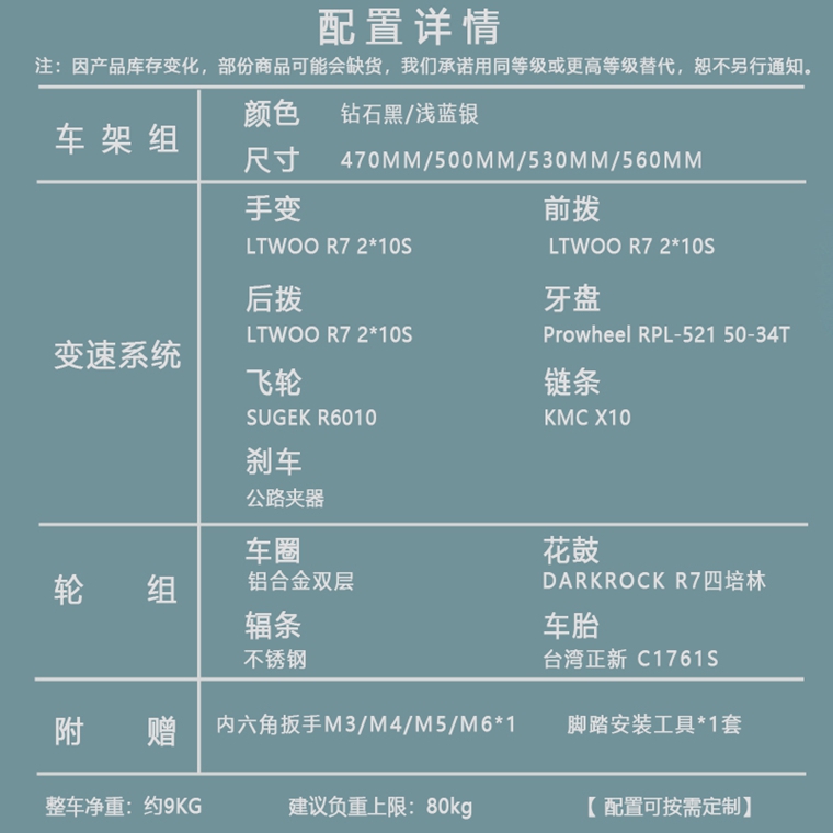 DARKROCK R-701C公路整車,整車使用藍(lán)圖R7公路套件,前2后10速。