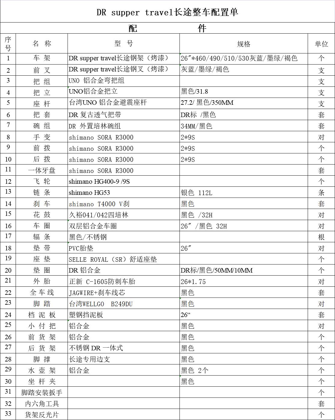 DARKROCK黑巖super travel 2公路彎把旅行車,shimano SORA R3000公路套件,其它配置可定制。顏色可選:灰藍色/墨綠色/深褐色,尺寸有:460/490/510/530mm