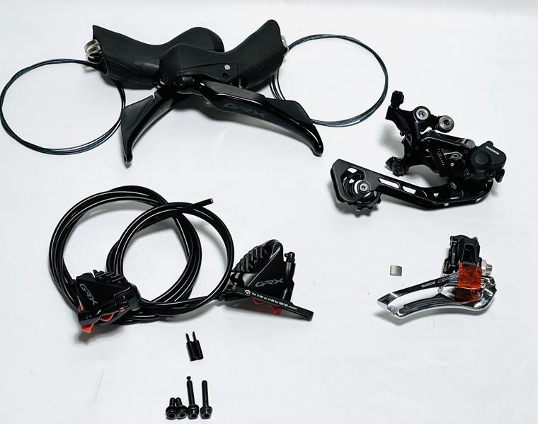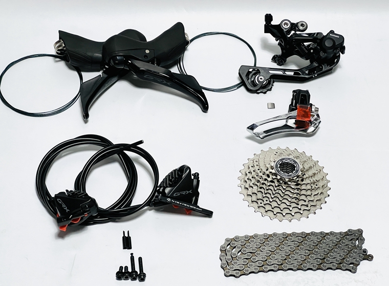 Shimano GRX400公路油碟套件,包含:左右手變+線管+樹脂散熱油碟+直裝式前撥+后撥+RX600牙盤+RS501中軸+HG50-10?36T飛輪或HG500-10 32T飛輪+HG54鏈條