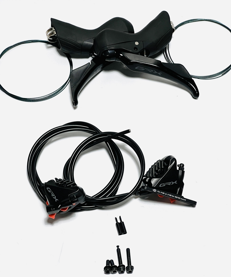 Shimano GRX400公路油碟套件,包含:左右手變+線管+樹脂散熱油碟+直裝式前撥+后撥+RX600牙盤+RS501中軸+HG50-10 36T飛輪或HG500-10 32T飛輪+HG54鏈條,如需了解更多,歡迎咨詢QQ/微信:81882299,或致電:18922208459