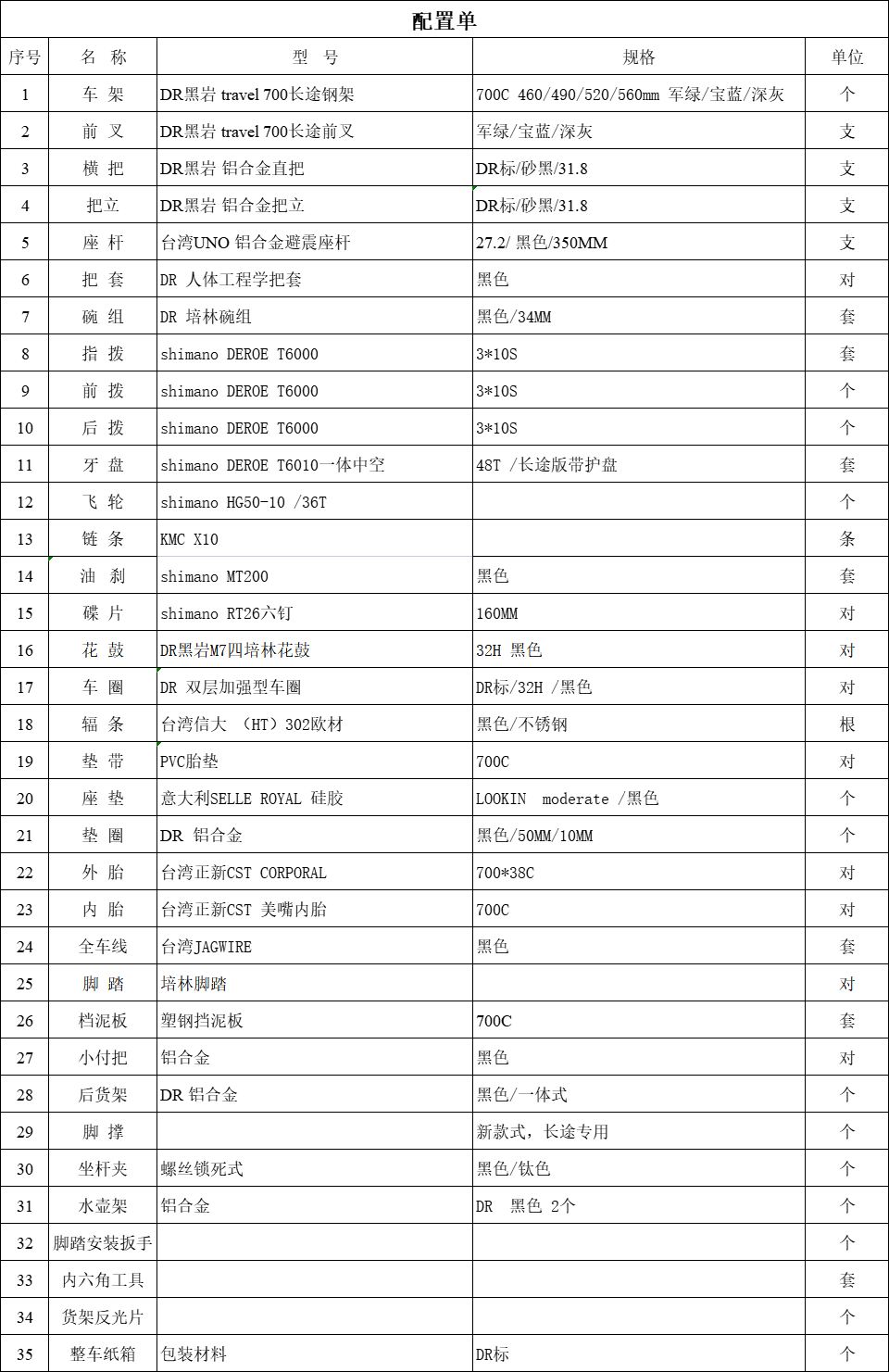 DARKROCK travel 700長途旅行車,shimano DEORE T6000套件, 30S,車架顏色有:軍綠色、深藍色、深灰色,車架尺寸:460MM 490MM 520MM 560MM.