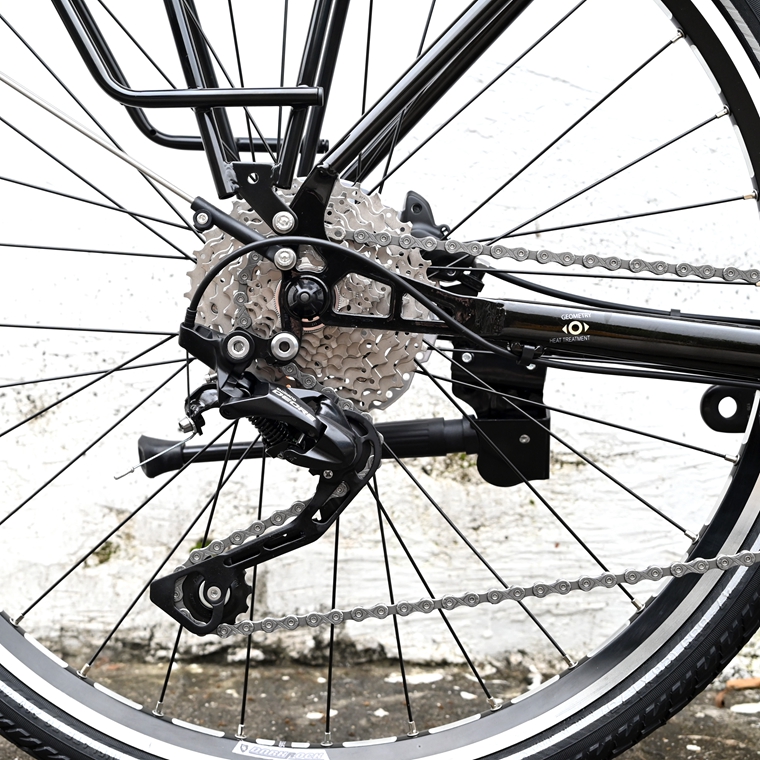 顏色有:墨綠色,深褐色,灰藍色;尺寸有:460/490/510/530mm,現貨配置為T6000指撥前撥后撥 T6010牙盤 HG50-10飛輪 MT200油碟。升級不銹鋼后貨架,如下圖: