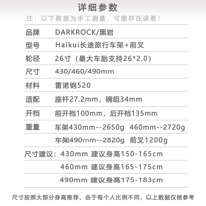 DARKROCK黑巖DR haiku斜梁式鉻鉬鋼車架前叉 26寸斜梁旅行車架前叉,如需了解更多,歡迎咨詢QQ/微信:81882299,電話:18922208459