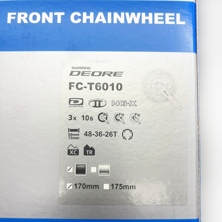 盒裝Shimano DEORE T6010一體牙盤(48T),黑色,齒數(shù)為:48-36-26T。重量約950g。如需了解更多,歡迎咨詢QQ/微信:81882299,或致電:18922208459。